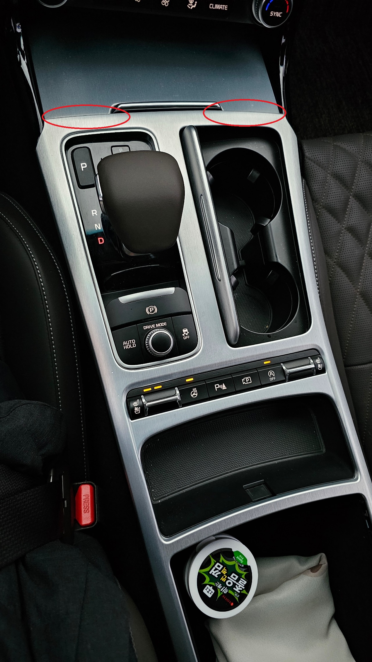 위 사진의 휴대폰 충전 커버를 연 상태에서, 붉은색 동그라미 쳐진 부분을 힘으로 들어내면 콘솔이 떨어져 나옵니다.