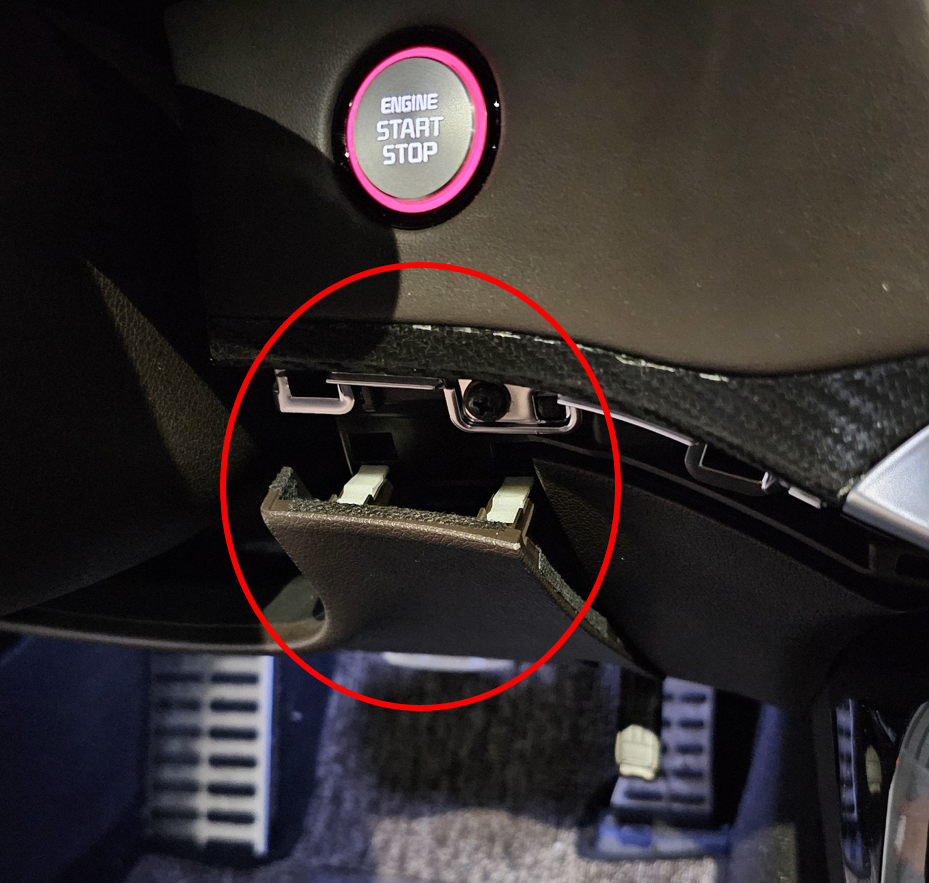 4. 엔진 시동 버튼 하단에 있는 커버를 분리하거나 걸개(?)만 분리