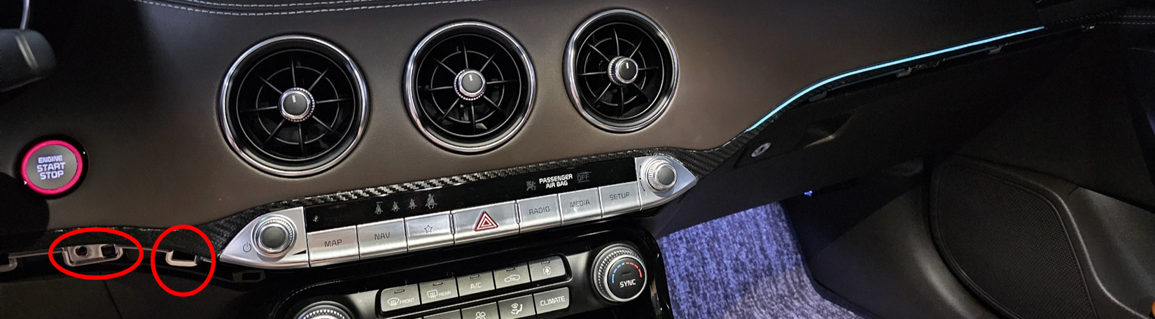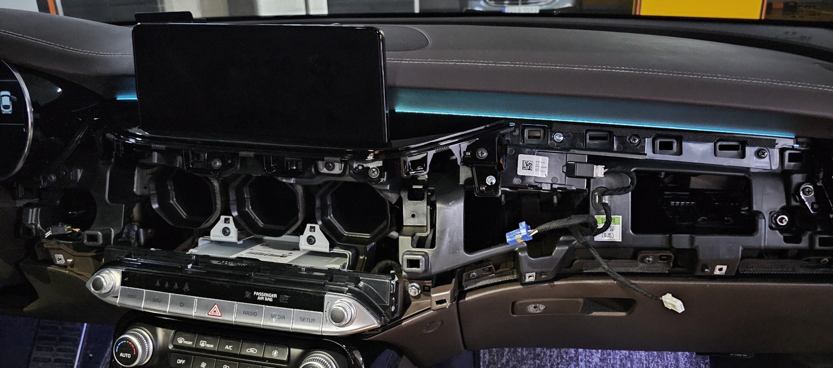 - 센터페시아를 분리하면 엠비언트와 에어백 커넥터가 우측에 연결되어있는데, 이 두개를 모두 탈거